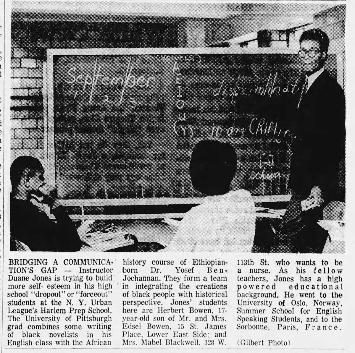 During the tail end of filming Night of the Living Dead and into 1968, Duane Jones was teaching English to kids that were basically pushed out into the streets of NYC, as well as college aged adults looking for a second chance at the Harlem Prep School during its first year of opening.